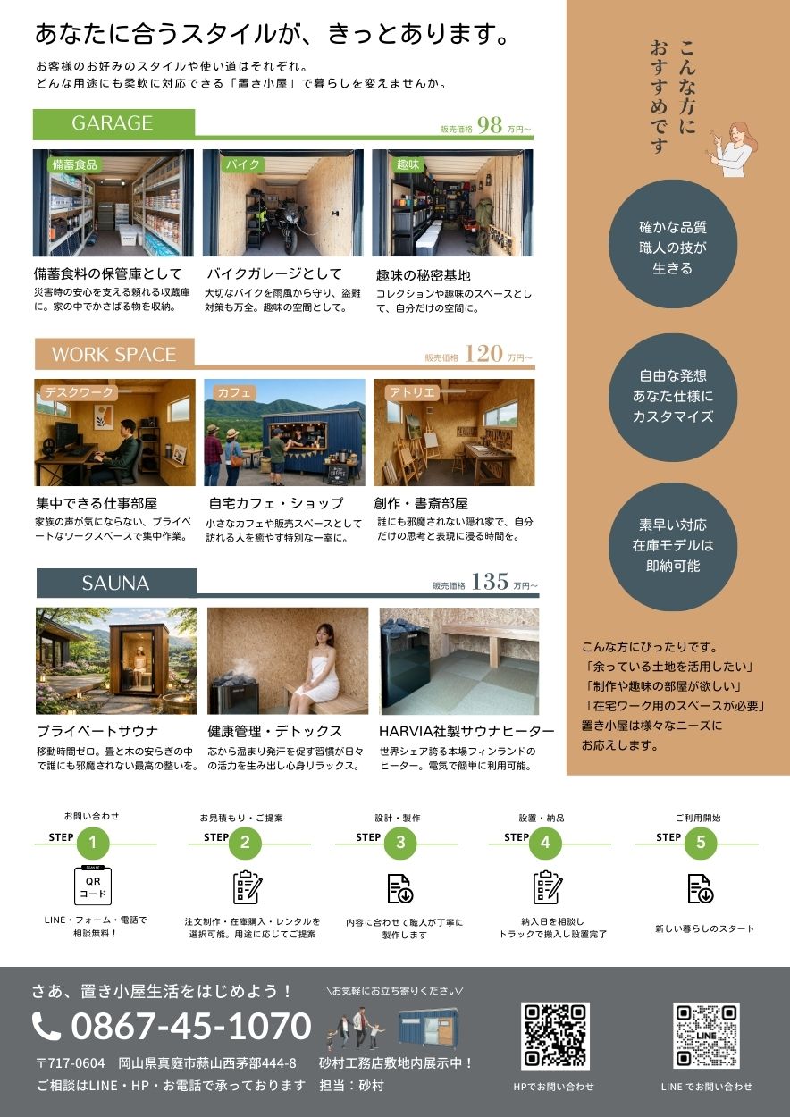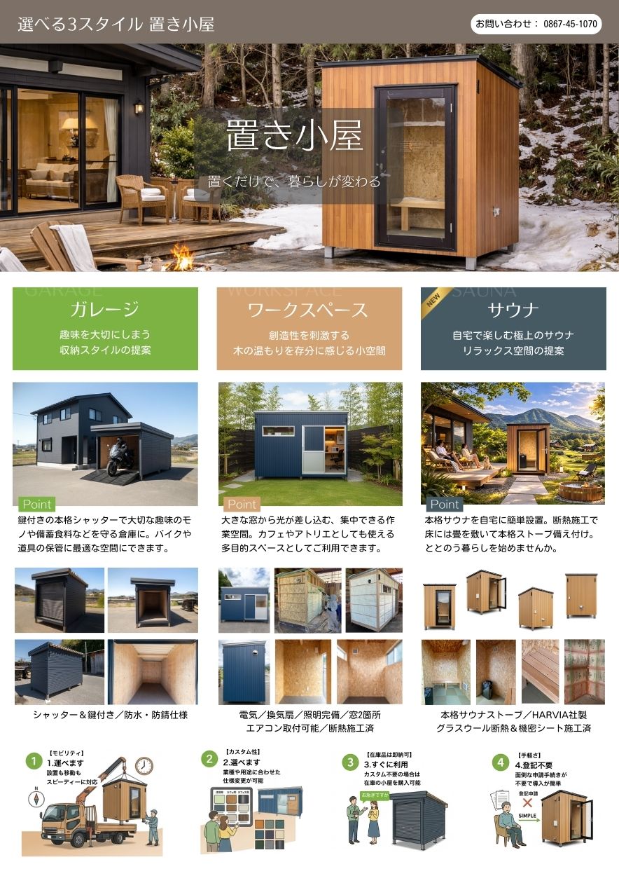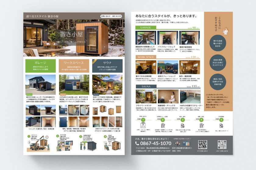 新商品サウナが登場!置き小屋の紹介チラシが完成しました